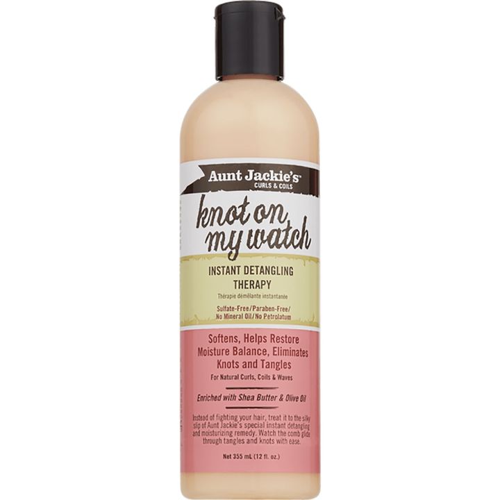Aunt Jackie's Knot On My Watch Detangler 335 ml detangles every hair type and texture. This detangler guards against tangles, knots and unruly locks. Leaves hair silky smooth, protects hair from breakage and restores moisture balance. Suitable for daily use on both wet and dry hair.