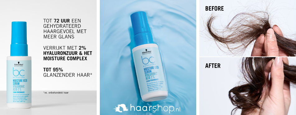 One example is BC Bonacure Moisture Kick Serum. This serum has been specially developed for dry and dehydrated hair and contains hyaluronic acid derivatives that bind moisture, while the lightweight formula smooths the hair without weighing it down.