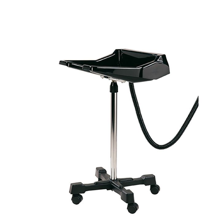 Barber sink with height adjustable stand, drain tray, BD 46x46 cm. Available with and without wheels.