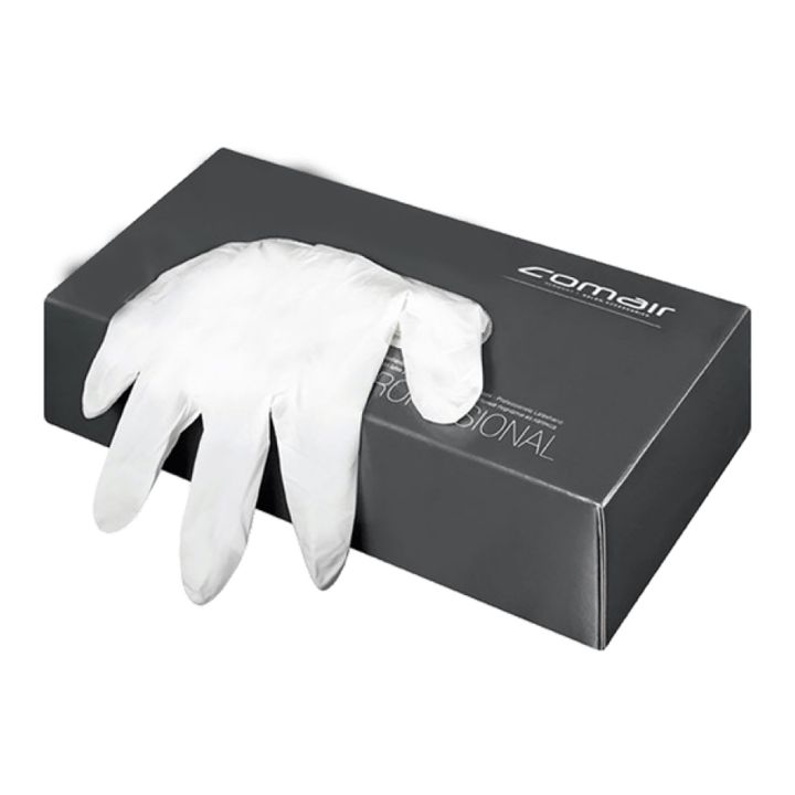 Vinyl gloves size L are powder free. One package contains 100 pieces of gloves. These gloves have an extra long shaft. Vinyl gloves are convenient to use while dyeing or washing hair. After use, the gloves can be discarded.