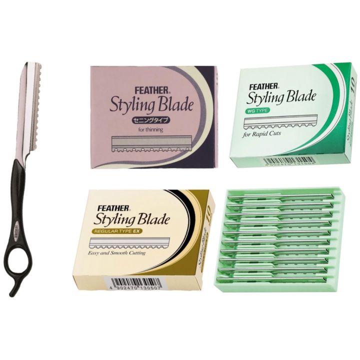 - Feather Styling Regular Blades: smooths and cuts 60% of the hair.