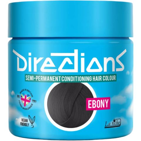 La Riché Directions Ebony 88 ml is an intense black semi-permanent hair dye that gives hair deep, glossy color without damaging it. This rich, cool black shade creates an elegant and powerful look with a natural shine. The formula is completely free of ammonia, peroxide and PPD, and enriched with conditioning ingredients that keep hair soft and supple. Perfect for those who want intense, even coverage while maintaining healthy hair condition.