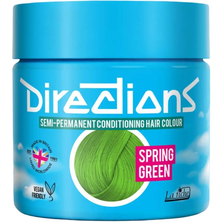 La Riché Directions Spring Green 88 ml is a fresh semi-permanent hair dye in a vibrant spring green shade. This color exudes energy and creativity and is perfect for those who love a playful, eye-catching look. The mild, conditioning formula is free of ammonia, peroxide and PPD, which prevents damage to the hair. Its conditioning properties keep hair soft, supple and shiny. Ideal for full coloring or colorful highlights combined with other Directions shades.