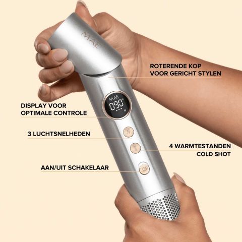 MAE Airstyler Pro ll Silver is the versatile 5-in-1 Multistyler with which you will effortlessly create salon-worthy hairstyles. Whether you go for voluminous curls, smooth locks or extra volume, this innovative styling device will help you achieve any look - without risk of heat damage! The advanced Coandă technology automatically wraps your hair around the attachments, giving you beautiful results without damage. In addition, the airwrap reduces frizz and instantly adds volume to your hair, so your hair always looks healthy and radiant. For luxurious and safe storage, the Airstyler comes in a stylish real leather storage box, ideal for both home and travel.