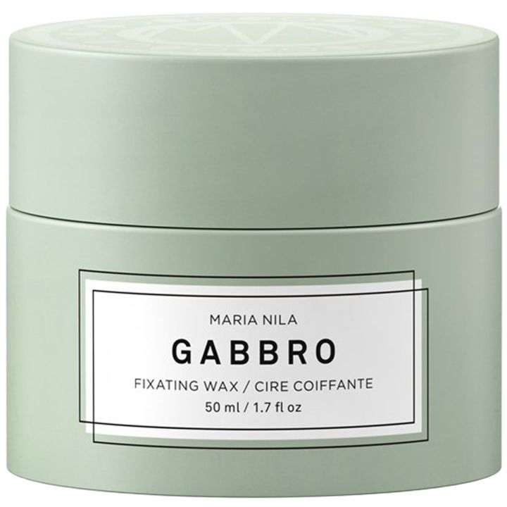 - Take a small amount Maria Nila Minerals Gabbro Fixating Wax on your fingers and palms and apply to your hair, either dry or damp.