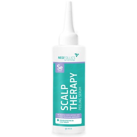 Neofollics Scalp Therapy Peeling Serum 90 ml is a powerful scalp treatment that helps reduce dandruff, flaking and itching. This serum exfoliates the scalp with active ingredients such as salicylic acid and glycolic acid, effectively removing dead skin cells and excess sebum. Soothing extracts of witch hazel, licorice root and geranium soothe irritation and promote a healthy, clean scalp. Ideal for sensitive, flaky or irritated scalps and perfect in preparation for further care with the Scalp Therapy Shampoo.