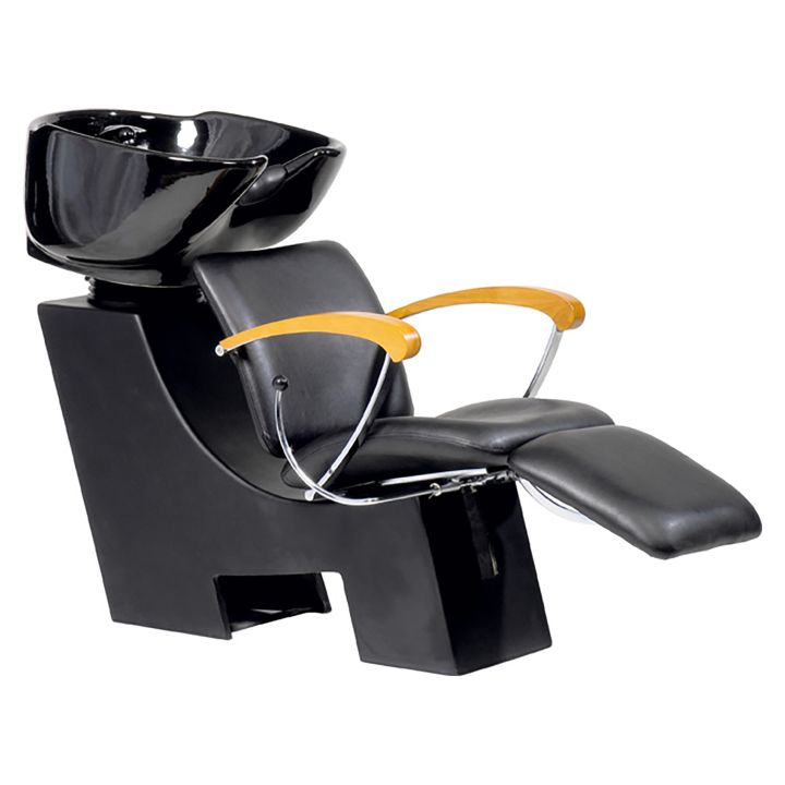 Height when tilted sink 97 cm, width 60 cm, depth with footrest 140 cm, sink 50 cm wide x 38 cm deep, footrest depth 38 cm. Upholstery chair is in black imitation leather.