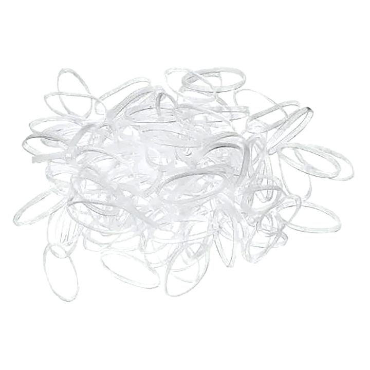 Thin, transparent, rubber elastics with a diameter of 20mm packed in a box of 500 pieces. The rubber bands are great for securing braids in hair or pigtails in fine hair.