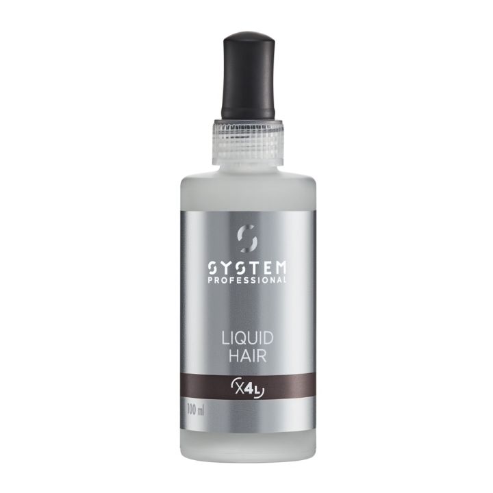 System Professional Extra Liquid Hair X4L 100 ml is specially designed to strengthen and increase the vitality of fragile and damaged hair. It gives the hair more resistance and vitality. Deep conditioning effect of essential amino acids. Liquid Hair is a Molecular Hair Refilling treatment that reconstructs the hair fiber and strengthens the hair