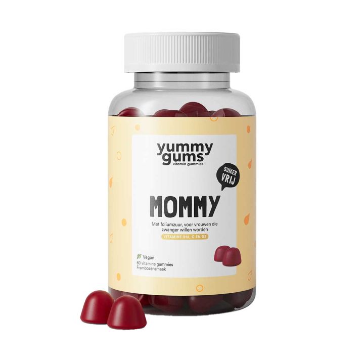 Plus, they provide extra support for your little miracle's development. The multivitamin contains vitamin D and folic acid, which contribute to placental development, baby's growth, and your resistance and energy levels. The increased dose of folic acid, recommended during pregnancy by the Health Council, is an essential part of the mommy gummy. This vitamin is extremely suitable for women eager to become pregnant, considering it takes about four weeks for folic acid to be fully absorbed by the body. The mommy multivitamin consists of 13 vitamins and minerals that benefit both you and your little one. Plus, the delicious raspberry gummy is easy to take, vegan and free of sugar, gluten and lactose.